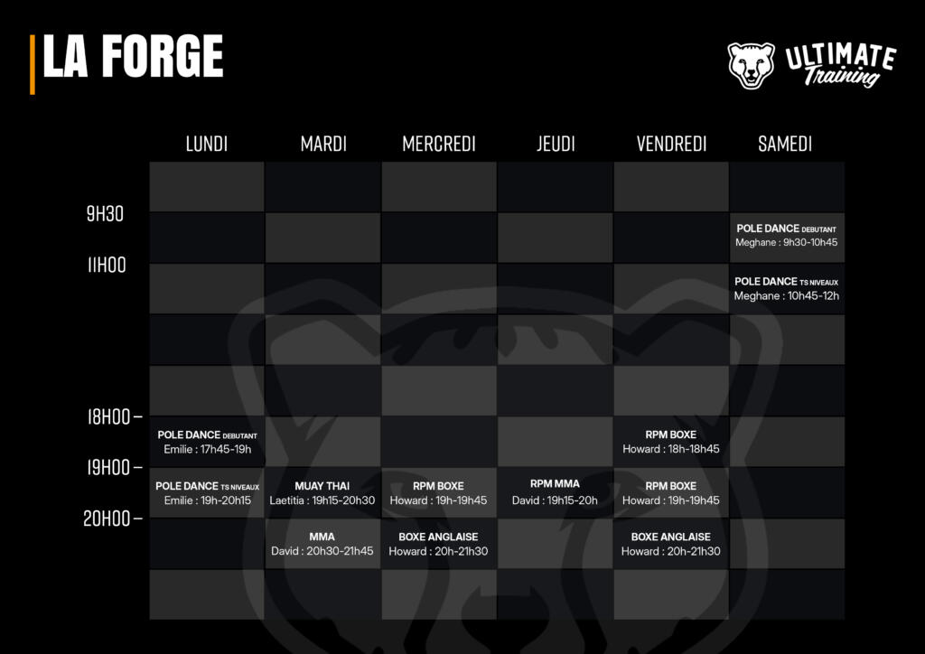 horaires d'ouverture Lundi : 6h00 — 00h Mardi – Vendredi : 5h00 – 00h Samedi : 09h-20h Dimanche : 09h-18h Les plannings